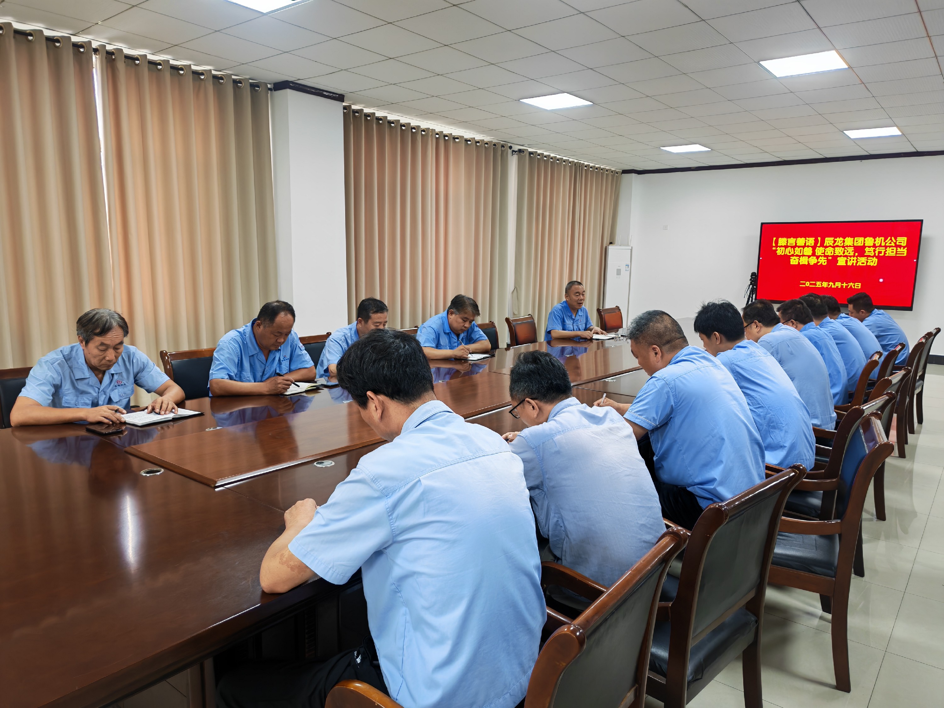 9月16日,辰龍集團魯機公司 開展“初心如磐,使命致遠,篤行擔當,奮楫爭先” 精神宣講活動。生產(chǎn)運營中心黨員及業(yè)務骨干共計14人參加了會議。會議由公司黨委委員、生產(chǎn)運營中心主任秦加泉同志主持。